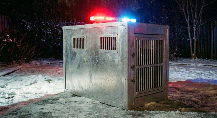 A sturdy metal cage was brought into the living room. Luna looked at Dakota through the isolation tape. Luna looked at Dakota through the quarantine tape, his eyes seeming to be pleading with her to do something.
