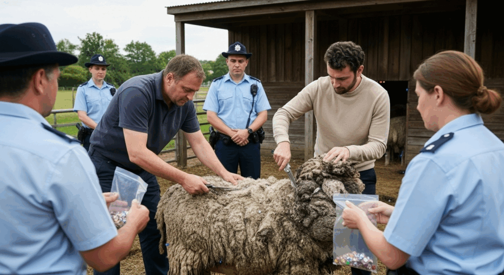 The police carefully cut away the wool, removing each foreign object embedded inside one by one. With every piece extracted, the sheep’s body visibly grew lighter. Yet it never bleated, enduring silently. Its pitiful state seemed to silently plead that the hidden treasures were not just jewels.