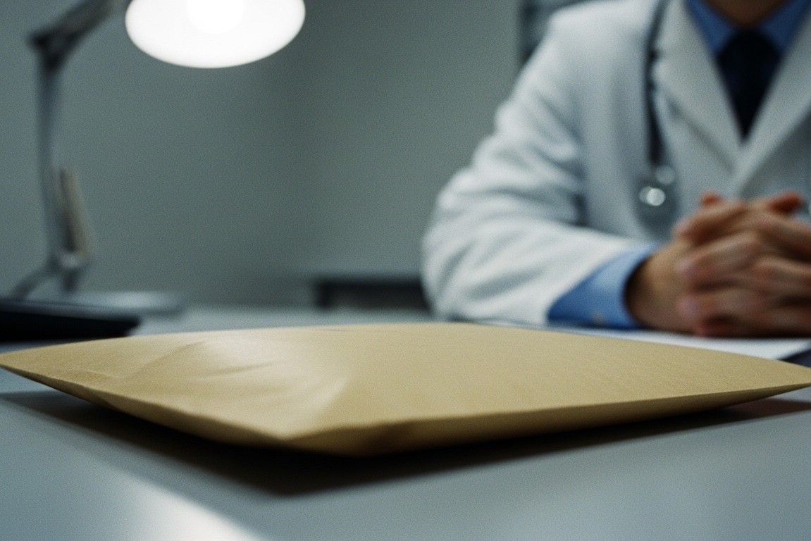 Doctor’s expression and envelope