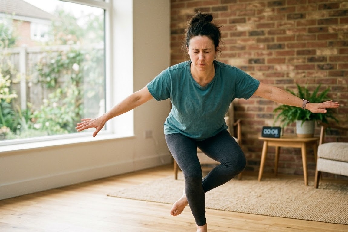 7. Count how many seconds you can stand on one leg with “eyes closed”.