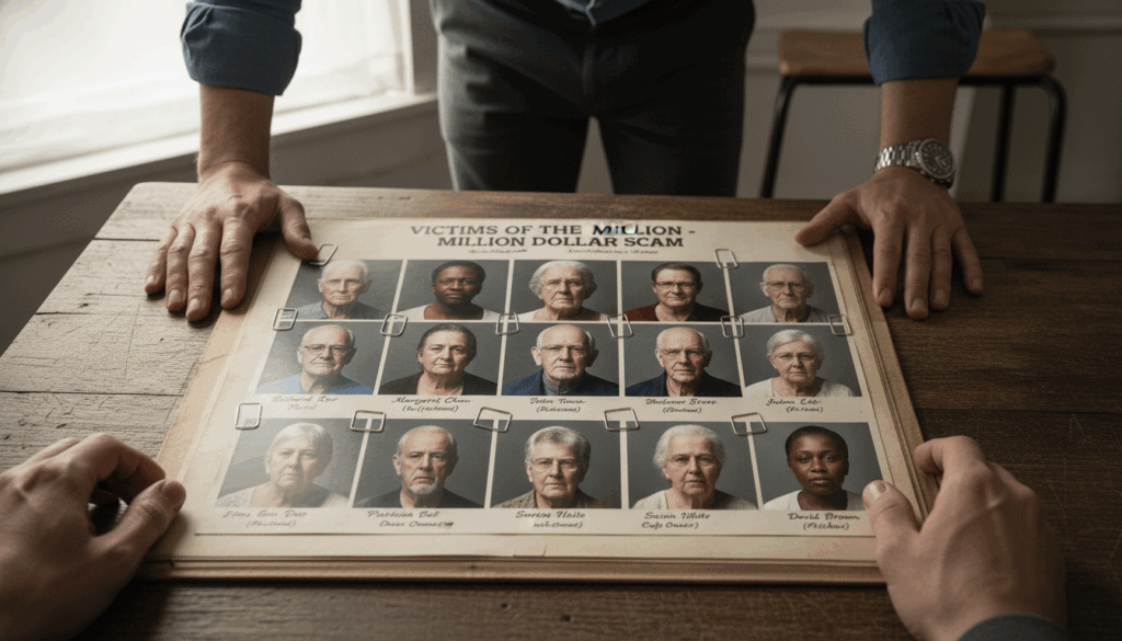 James later shared a list of those defrauded: small-business owners, pensioners—over two million dollars lost.