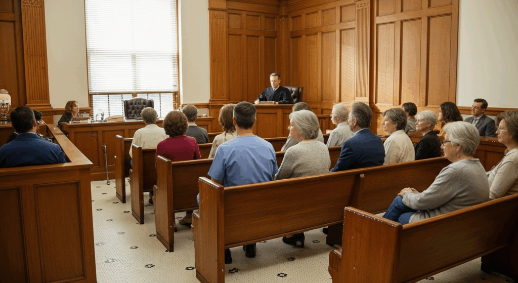 The courtroom was full.